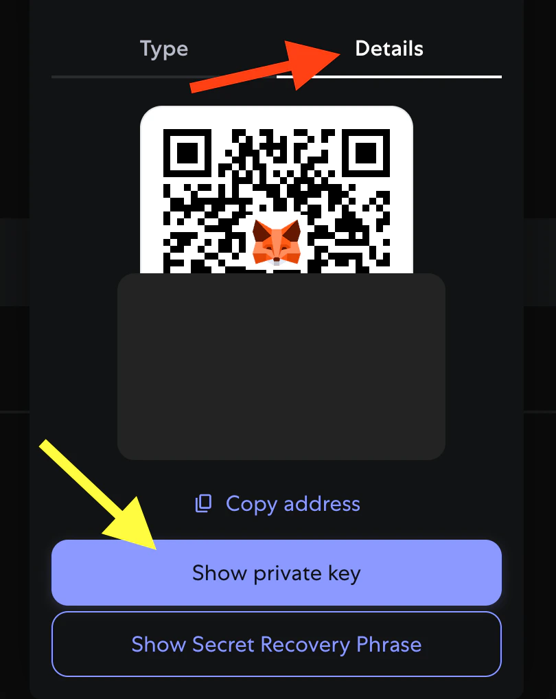 - Click the three dots menu → Account details → Show private key