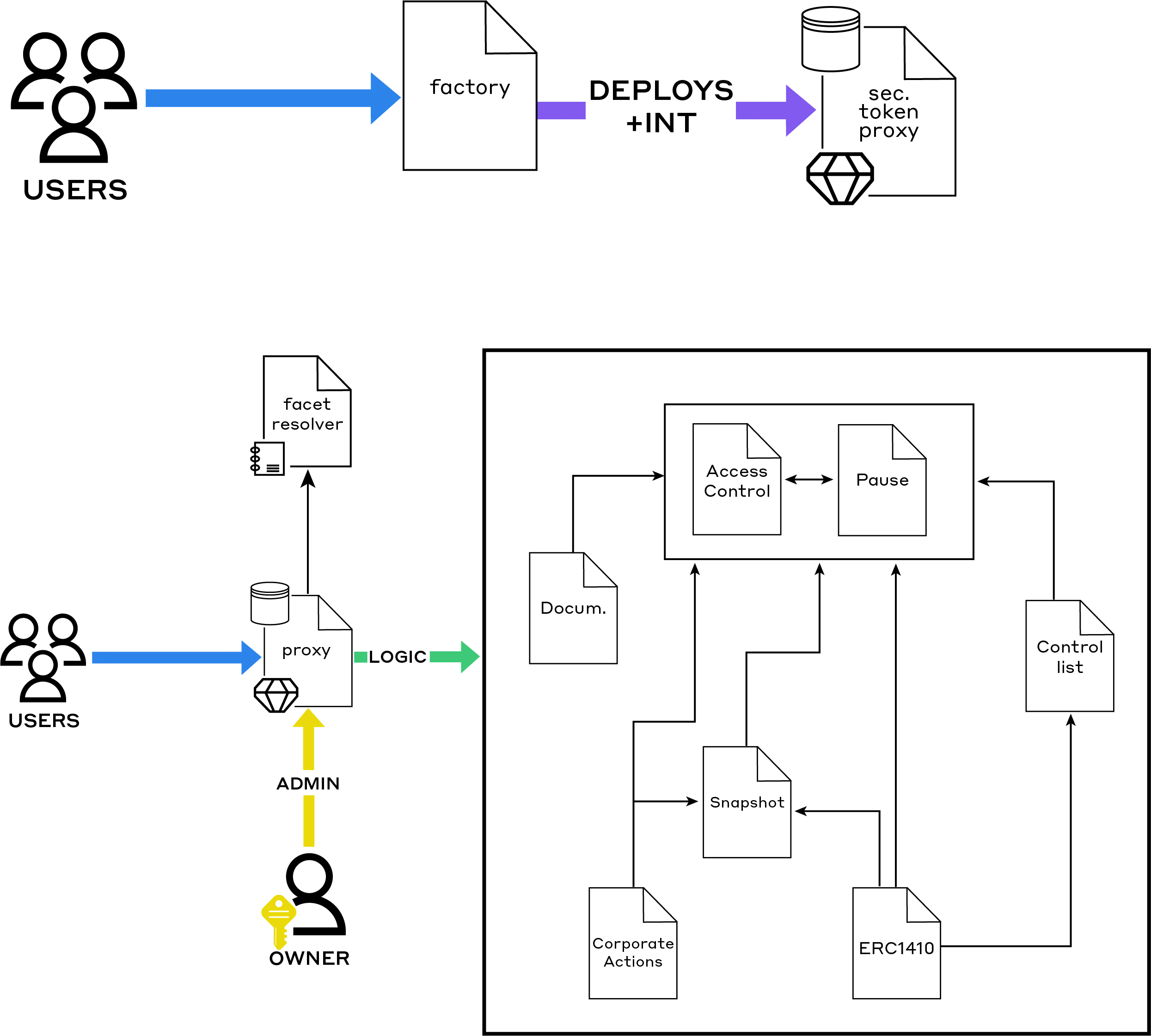 For those interested in technical architecture, ATS utilizes factory contracts to create new digital securities, resolver contracts to manage and execute specific functions, and proxy contracts to enable seamless upgrades. When tokenization is initiated, two smart contracts are deployed, these contracts work together with the proxy contract to create, operate, and upgrade digital securities.- Factory Contract: This contract is used to create new digital securities, like bonds or equities. It has methods like