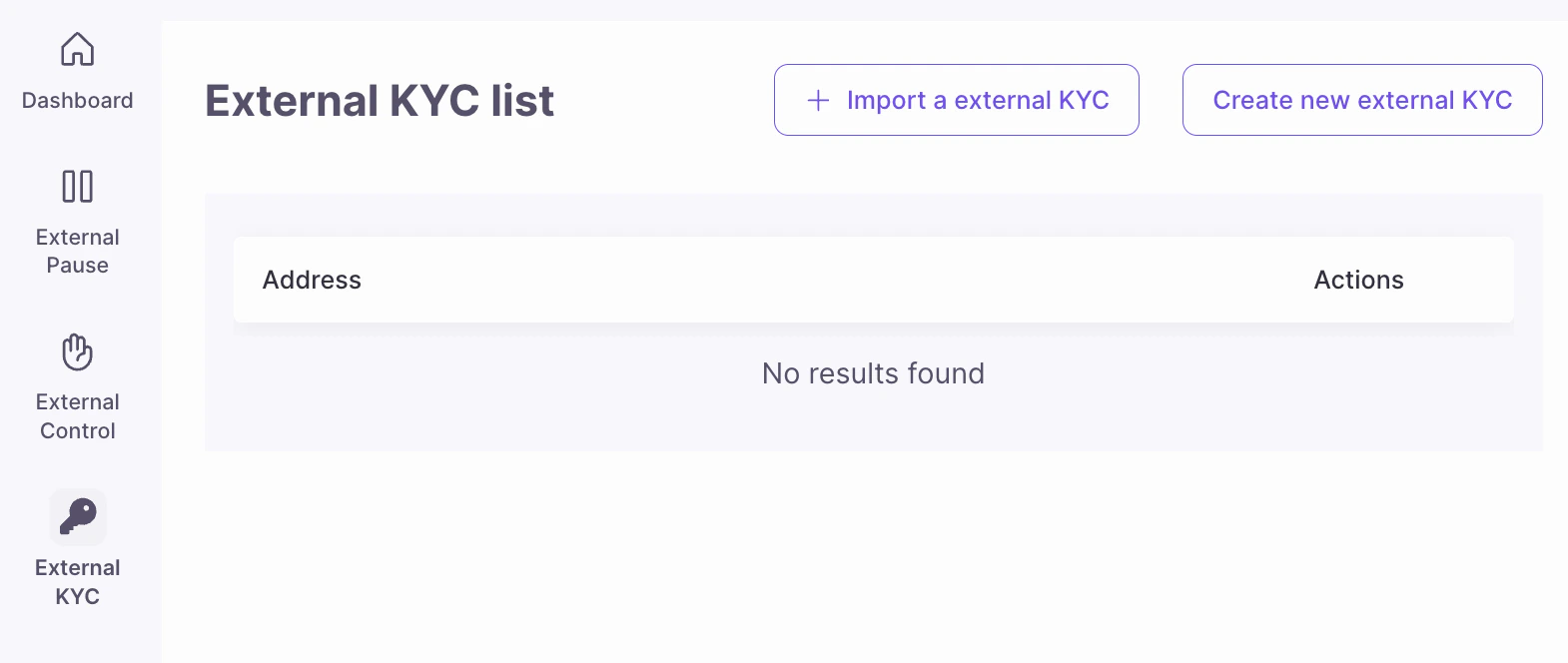 You have two ways to manage KYC. Choose based on your needs.External KYC List