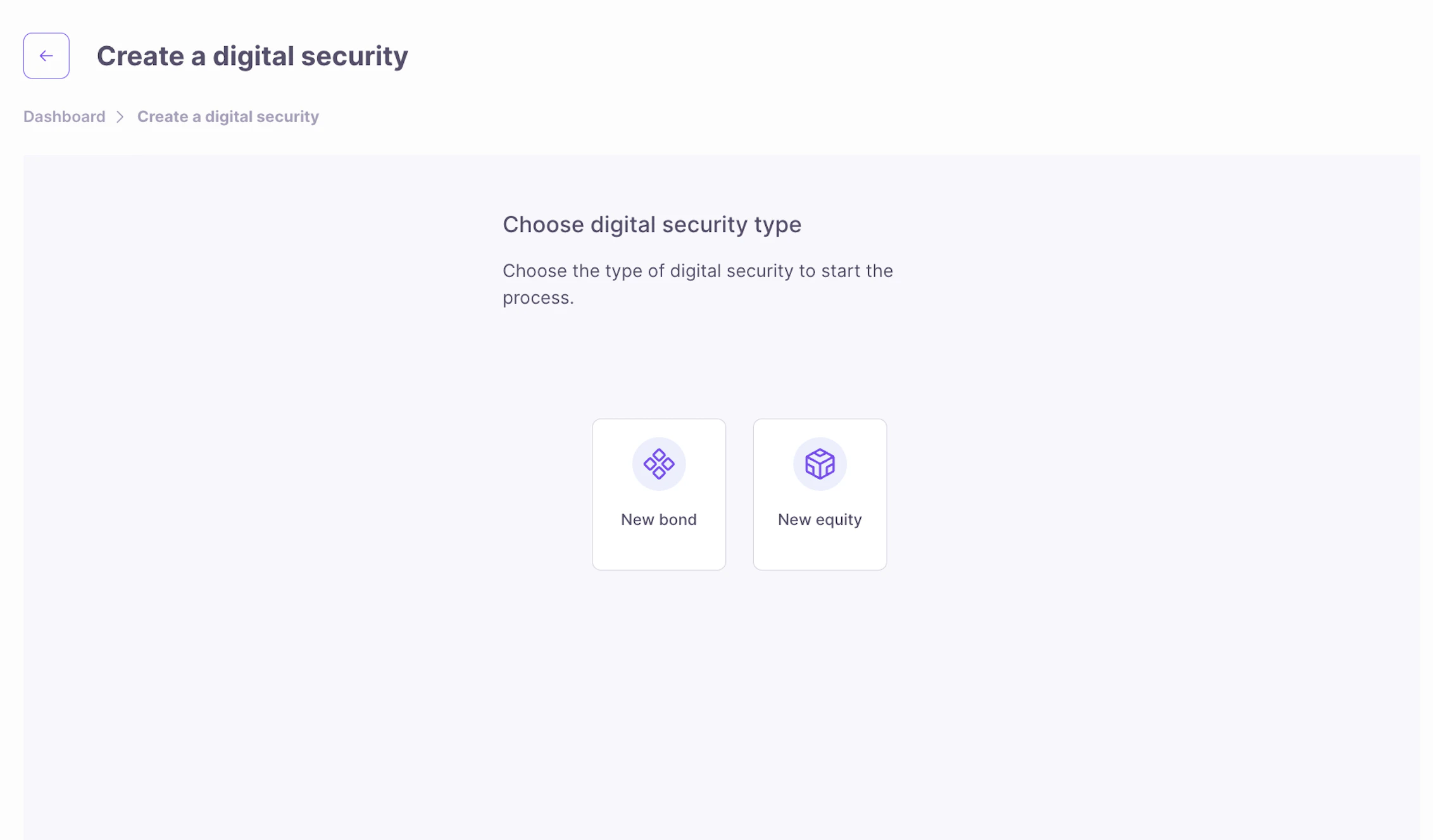 Choose the type of digital security to start the tokenization process and follow along.Asset Types